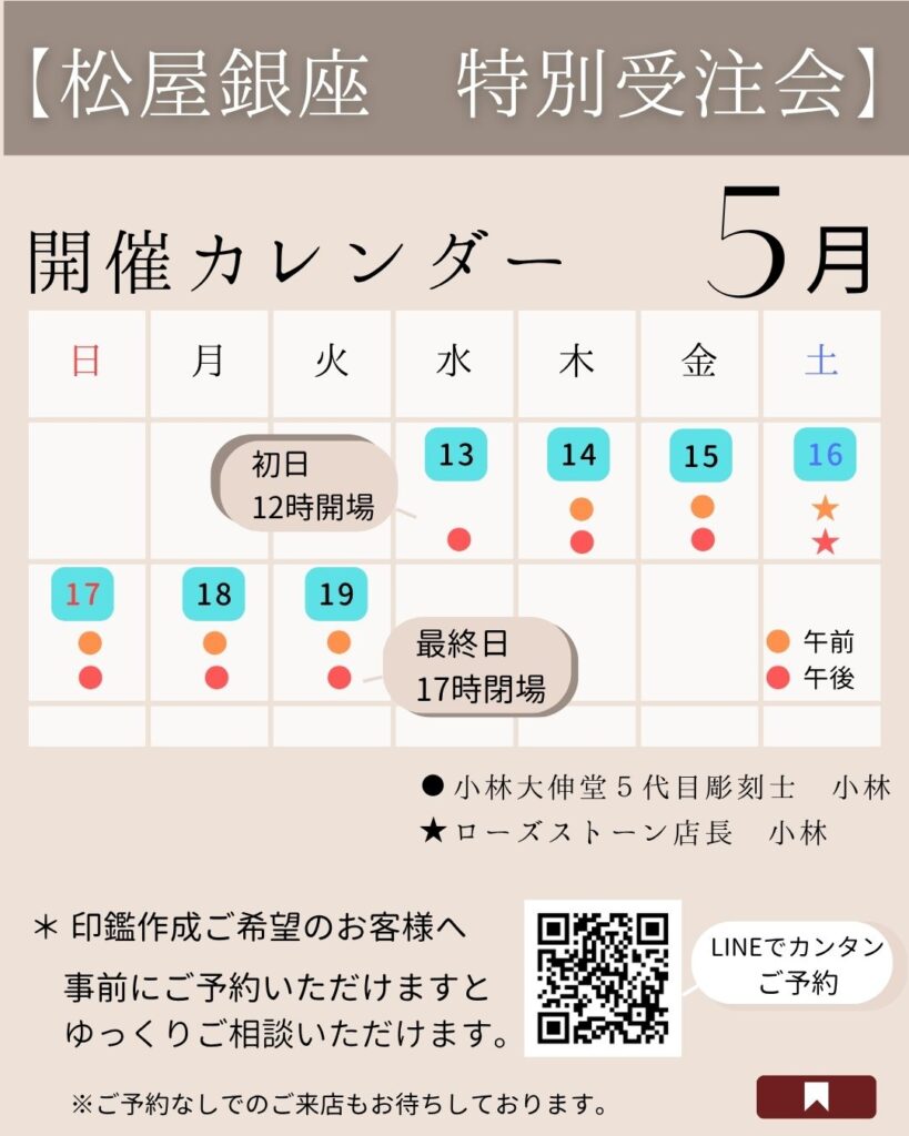 「松屋銀座での特別受注会」「松屋銀座 催事」と、小林大伸堂のスタッフにお伝えくださいませ。